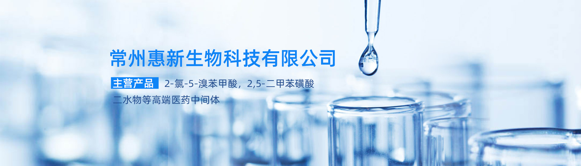 常州惠新生物科技有限公司位于金壇城南,總投資450萬元 ,占地面積20000平方米。 公司擁有高層次技術人員20名,緊跟市場需求,研發高端醫藥中間體,其中2-氯-5-溴苯甲酸年產量30噸以上,2,5-二甲苯磺酸二水物年產量10噸以上。公司擅長溴代、磺化、重氮化、氫化還原等一系列反應。生產檢驗設備齊全并擁有自營進出權,公司50%以上的產品出口歐洲,東南亞等地區。歡迎新老客戶合作咨詢!